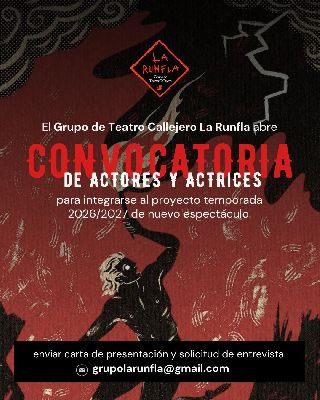 Invitan a actrices y actores interesados en sumarse al grupo de Teatro Callejero La Runfla de Parque Avellaneda , la convocatoria es para formar parte de un nuevo espectáculo areali...